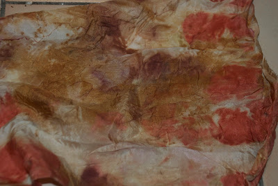 This image show the rusted metals l have started to use and what they have done to the silk.